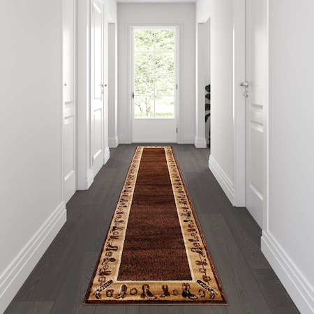 Flash Furniture Williams Collection Western Inspired Runner Area Rug for Indoor Use - Brown - 2' x 11'
