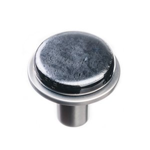- Handmade, iridized black fused-glass and Satin Nickel metal round knob. Geometric product line