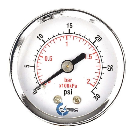 CARBO Instruments 2" Pressure Gauge, Chrome Plated Steel Case, Dry, 0-30 psi/kPa, Back Mount 1/4" NPT