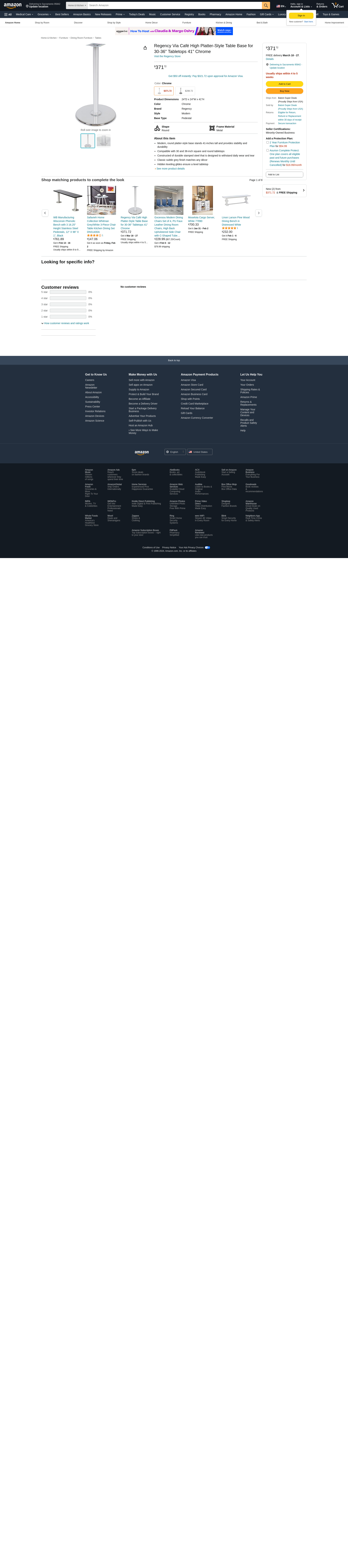 Regency Via Café High Platter-Style Table Base for 30-36" Tabletops