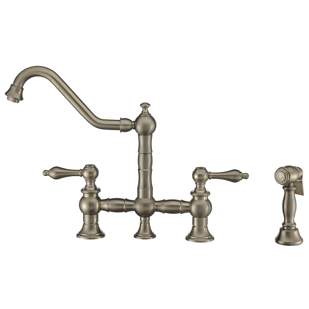Whitehaus Collection WHKBTLV3-9201-NT-BN Lever Handles and Solid Brass Side Spray Vintage Iii Plus Bridge Faucet with Long Traditional Swivel Spout, One Size, Brushed Nickel