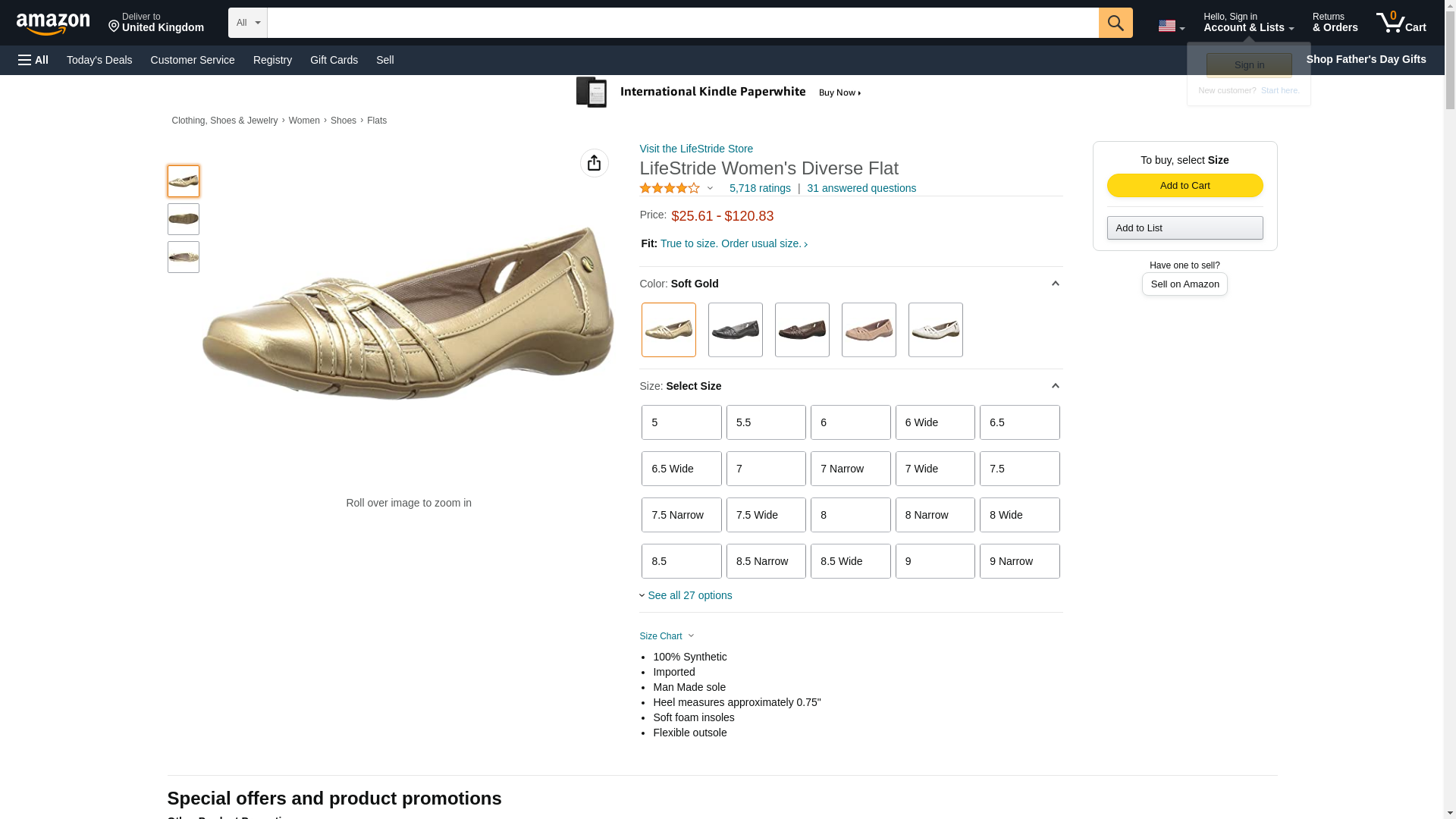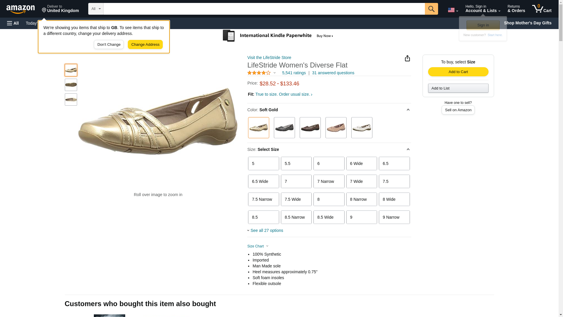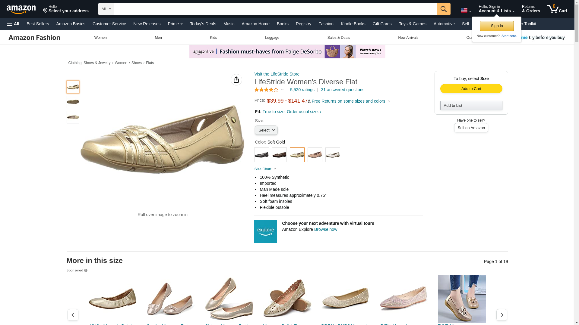LifeStride womens Diverse Flat, Soft Gold, 7.5 US