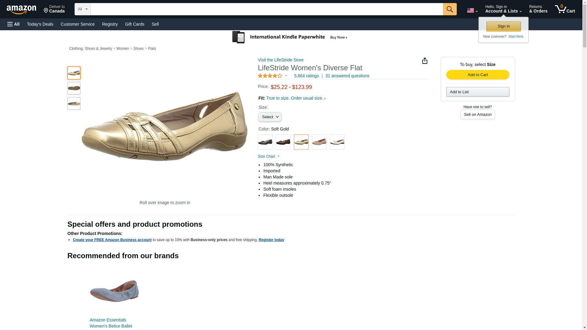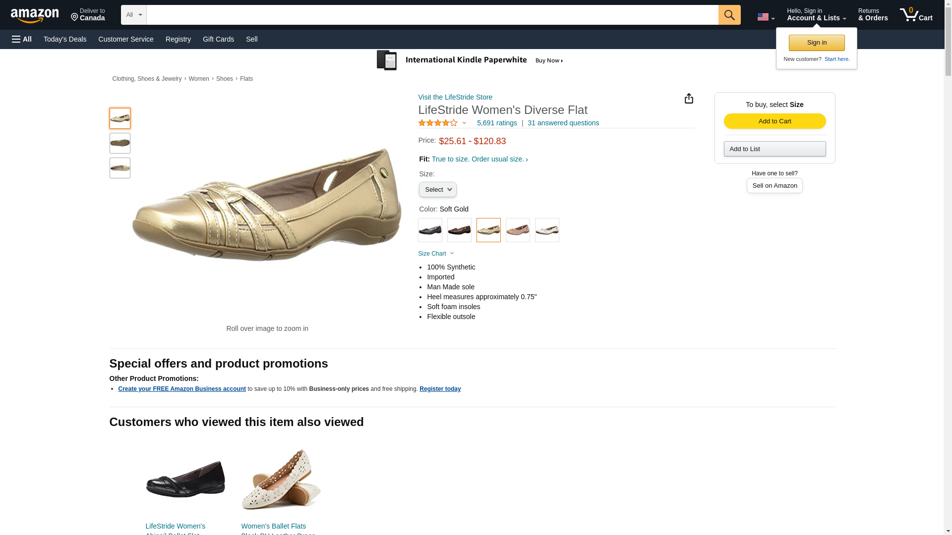 LifeStride womens Diverse Flat, Soft Gold, 6.5 US