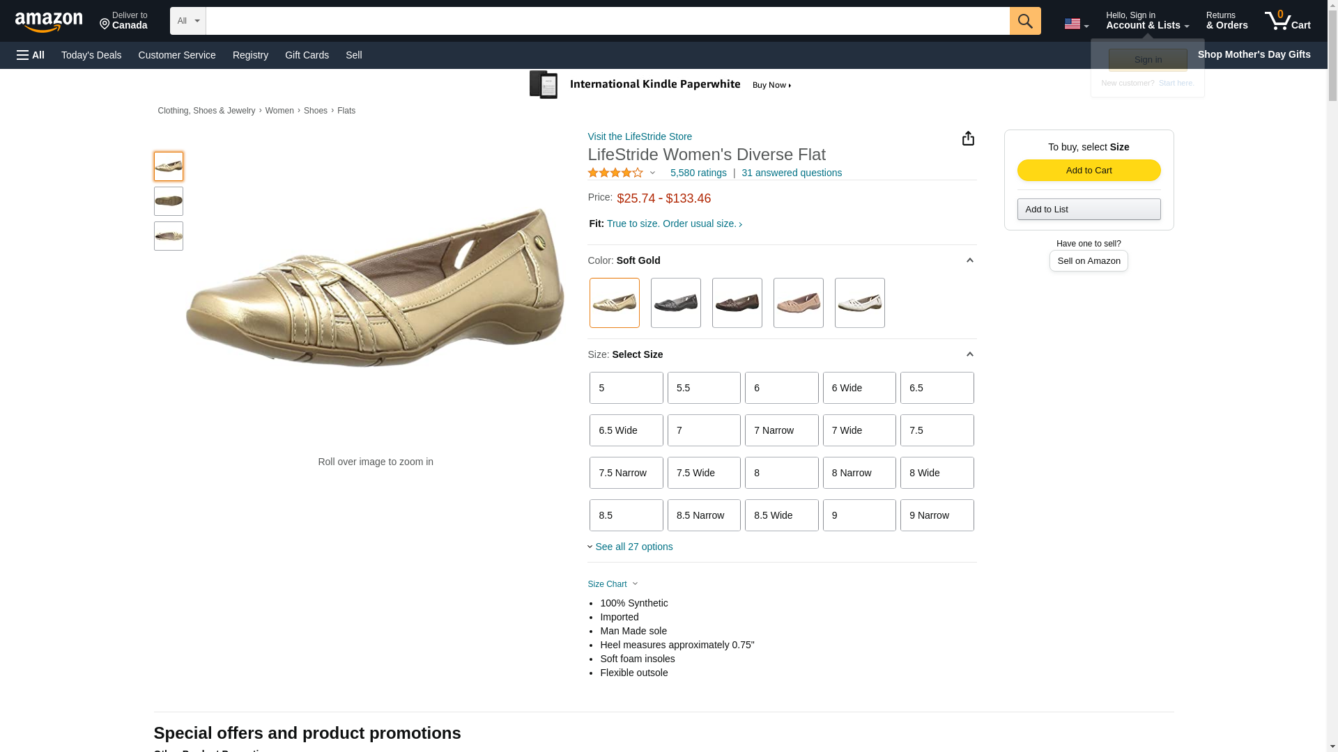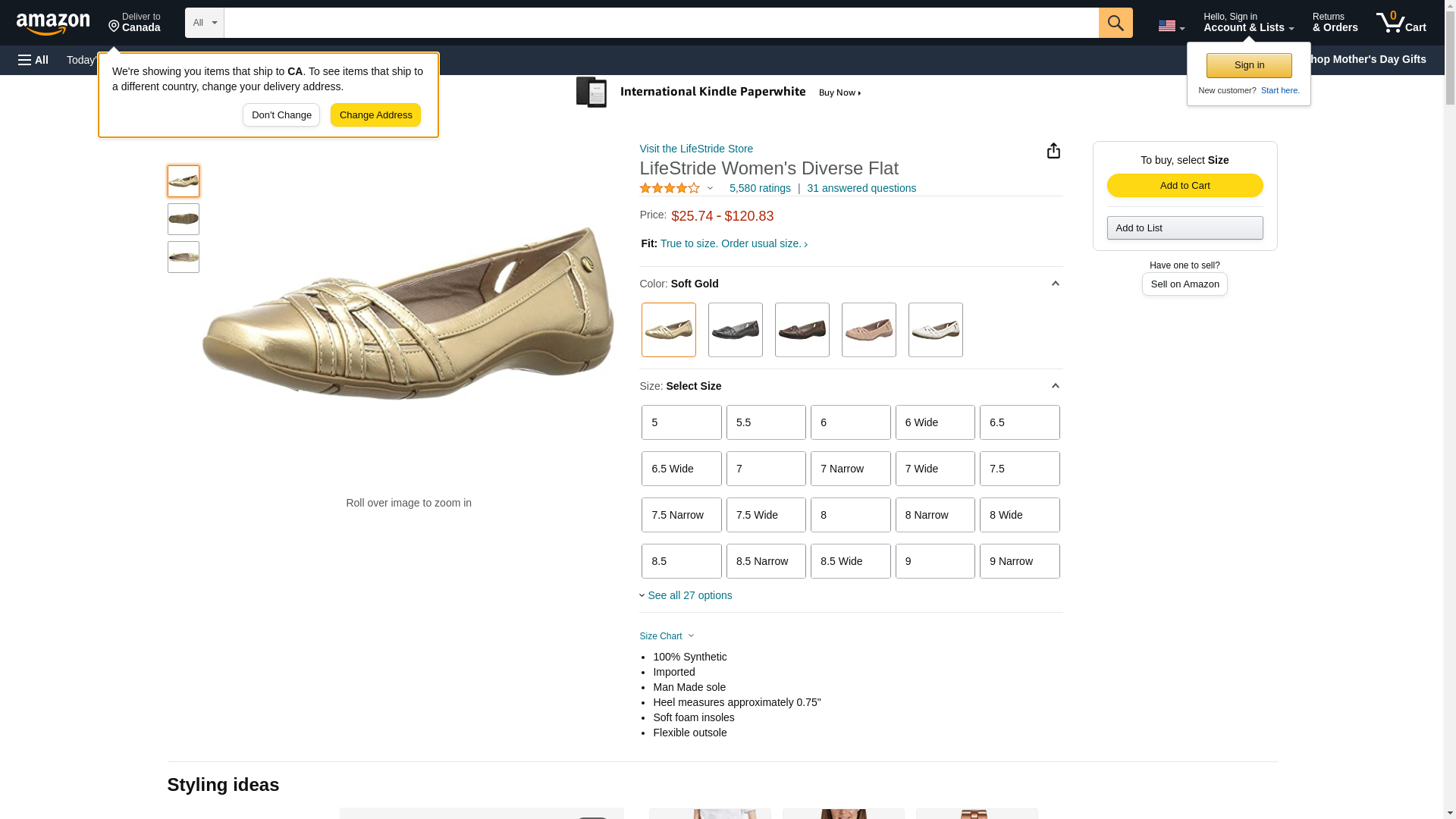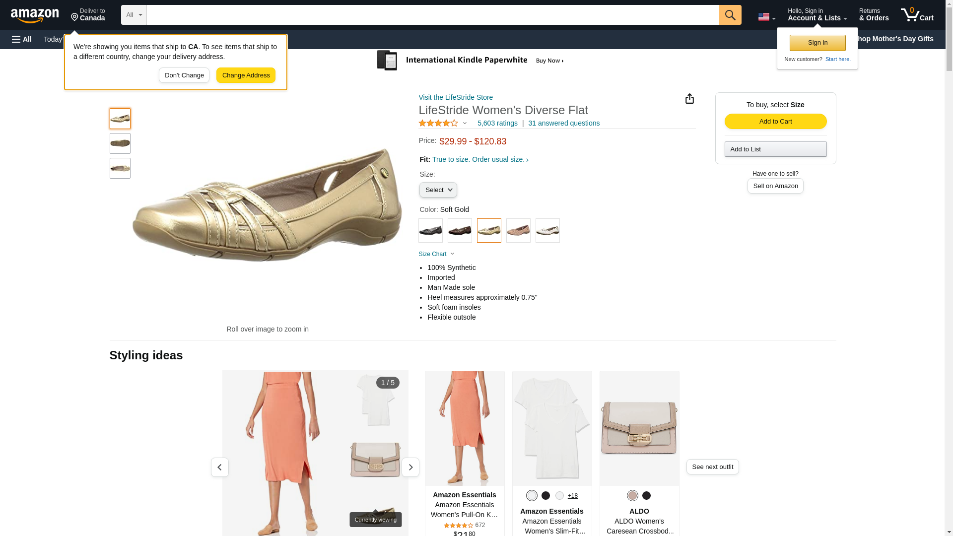 LifeStride womens Diverse Flat, Soft Gold, 7.5 Wide US