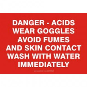 Danger - Acids Wear Goggles Avoid Fumes And Skin Contact Wash With Water Immediately 7" x 10" - MCHG503XF - Jendco Safety Supply