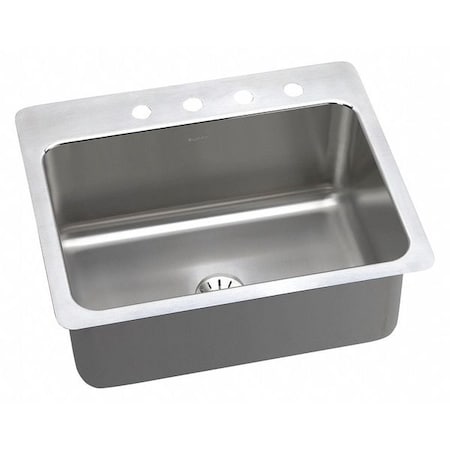 Elkay Lustertone Classic Stainless Steel 27" x 22" x 10" 4-Hole Single Bowl Dual Mount Sink with Perfect Drain