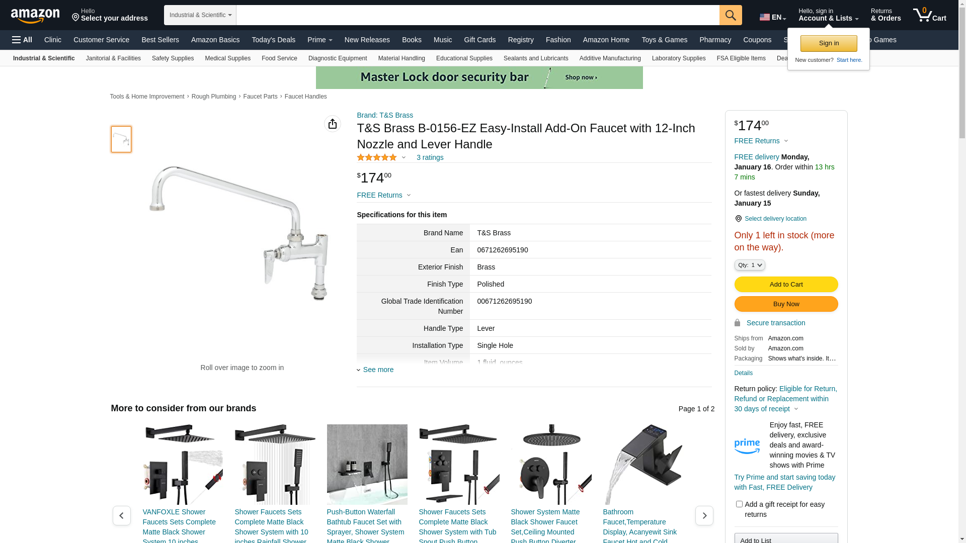 ![]() Chicago Faucet Shoppe | TS-B-0156-EZ | 1 | -2 | 1 | 1 @ $129.25 |