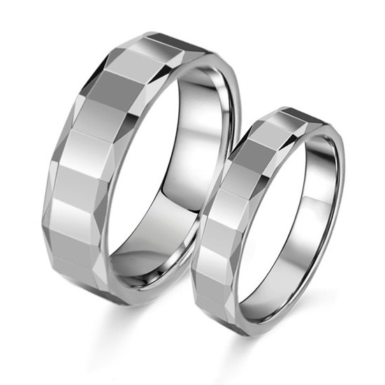 CET Domain SZ17-R187-7 Titanium Steel Silver Prism Couple Rings- Women-Size 7