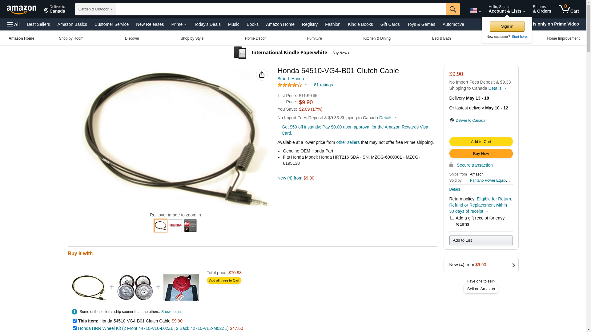 | 54510-VG4-B01 | 1 | -2 | 1 | 1 @ $11.88 | |