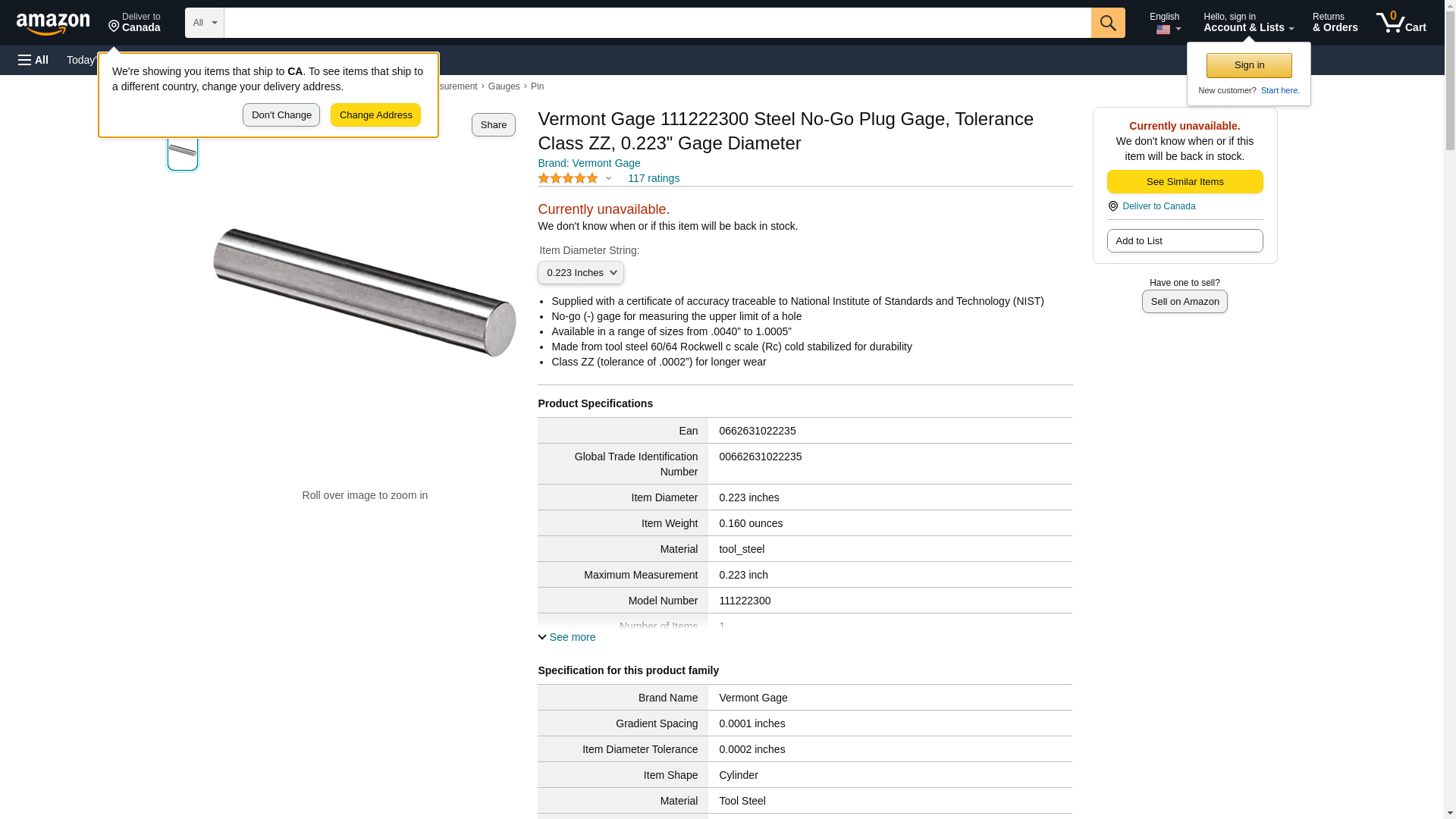 Order 111222300 by Vermont Gage .223 Minus Class ZZ Pin Gage, Steel - US Mega Store