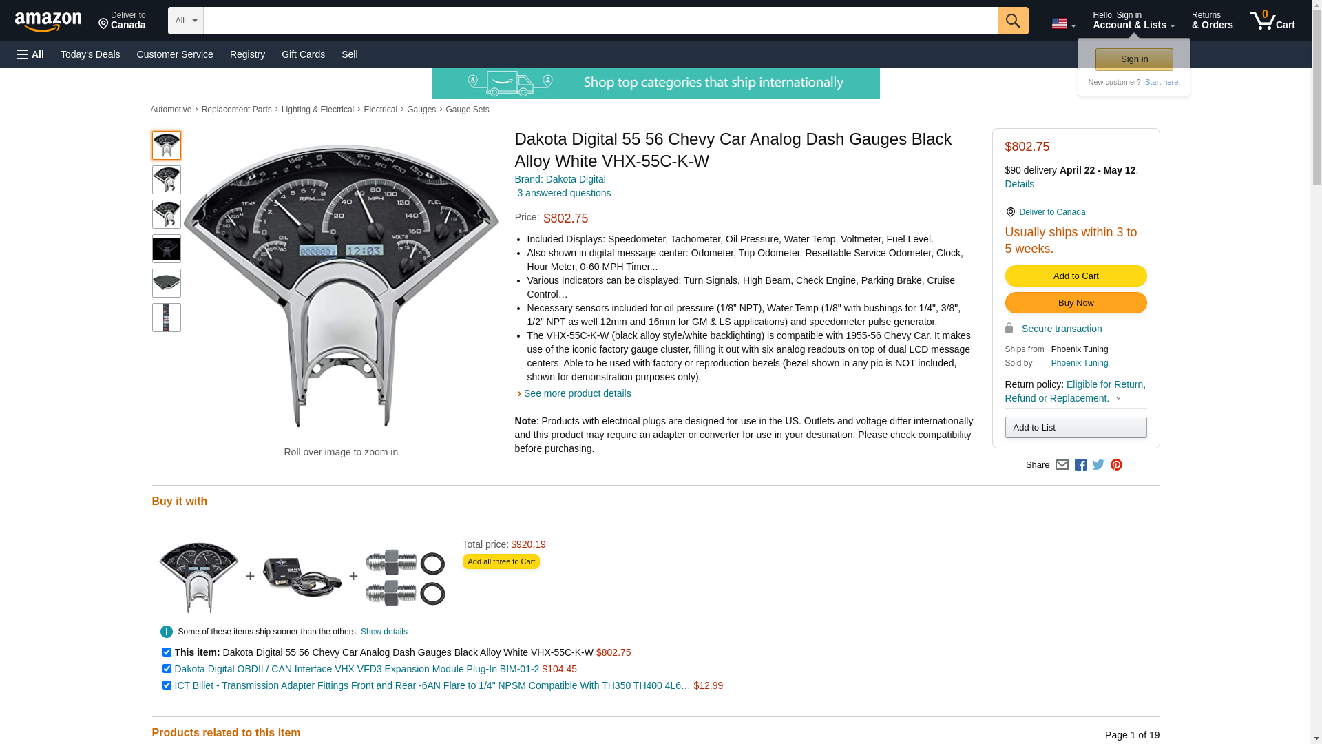 The new VHX System is compatible with 1955-56 Chevy Car, made to fit directly into the stock instrument bezel without modification, adding a wealth of features to this iconic vehicle (bezel is NOT included, shown for demonstration purposes only). <p> The stock 1955-56 Chevy car dash is lacking in information; VHX-55C makes use of the iconic factory gauge cluster, filling it out with six analog readouts on top of the dual LCD message centers. Able to be used with factory or reproduction bezels (sold separately). <p>Factory gear-indicator is eliminated; use GSS-3000 (sold separately) for full gear-word readouts in the message center.<p>Fully lit needles, backlit faces, and highly visible LCD message centers are a few of the things that you can see which set the VHX Series apart from yesterday’s traditional approach to instrumentation. A few of the features which you don’t normally see are the micro-controlled precision stepper motors, solid state sensors for unparalleled accuracy, and user-customizable display feedback, all supported by an unrivaled limited lifetime warranty which has become the standard for Dakota Digital instrumentation systems. Completely engineered and manufactured at the Dakota Digital facility in Sioux Falls, South Dakota, the VHX Series has completely revolutionized the instrumentation industry!<p> Analog Gauges:<p> Speedometer - 0-160 MPH<br> Tachometer - 0-8000 RPM<br> Oil Pressure - 0-80 psi<br>Water Temperature - 100-260ºF<br> Fuel Level - E, 1/4, 1/2, 3/4, F<br>Voltmeter - 9-17 VDC<p>Digital Message Centers:<p> Standard Displays:<p>-Odometer (One time user settable, Million Mile)<br>-Dual (A/B) Trip Meter (0- 9,999.9)<br>-Clock (12 hour)<p>Performance Meters:<p> -0-60 MPH Timer (0- 100 kmh)<br>-1/4 mile time<br> -1/4 mile end speed (trap speed)<br>-High speed recall<br>-High RPM recall<p>Built-In Indicators:<p>-Turn Signals (Left/ Right)<br>-High Beam<br>-Check Engine<br>-Parking Brake<br>-Cruise Control (On/ On & Engaged when equipped)...