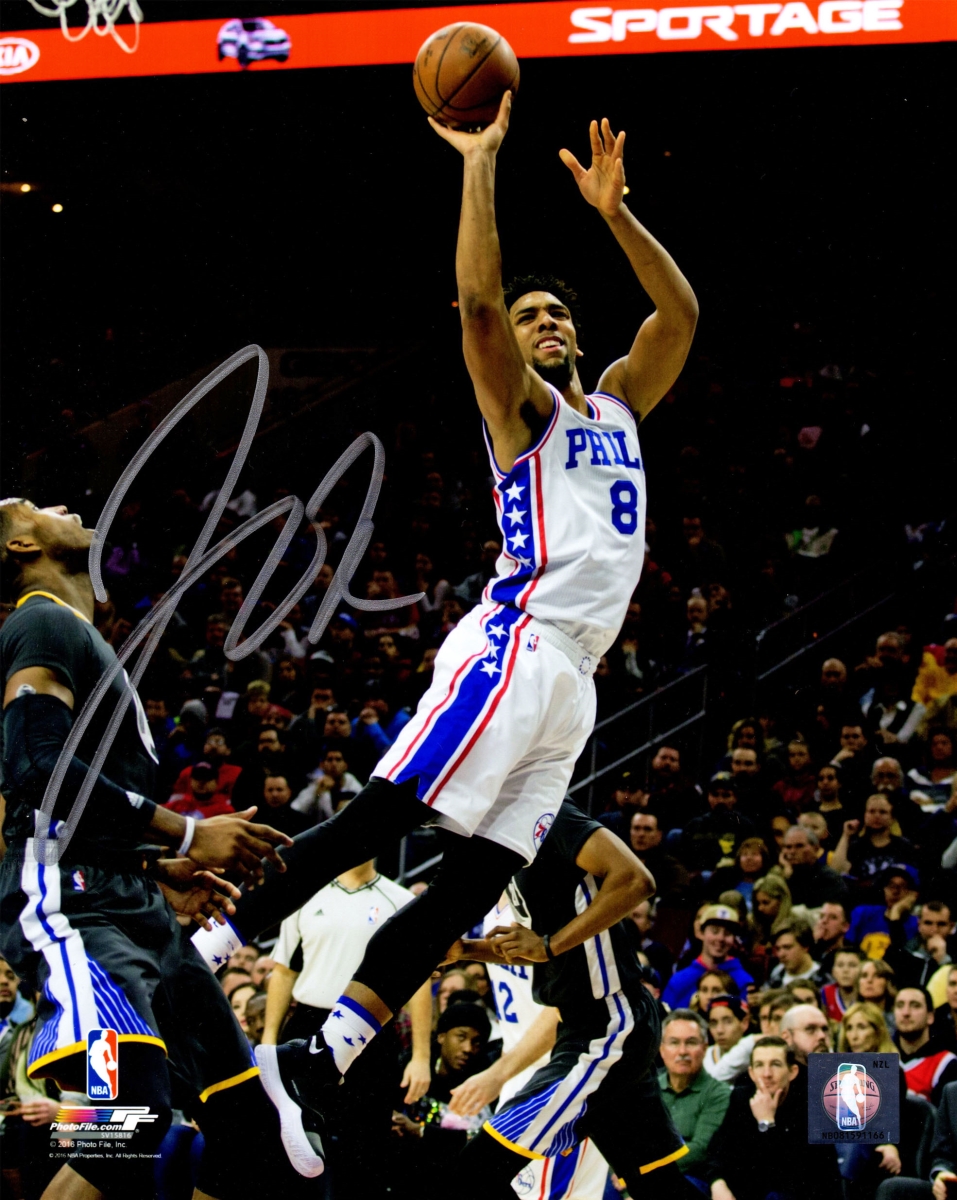 Schwartz Sports Memorabilia OKA08P212 8 x 10 in. Jahlil Okafor Signed Philadelphia 76ers Leaping Shot Action Photo