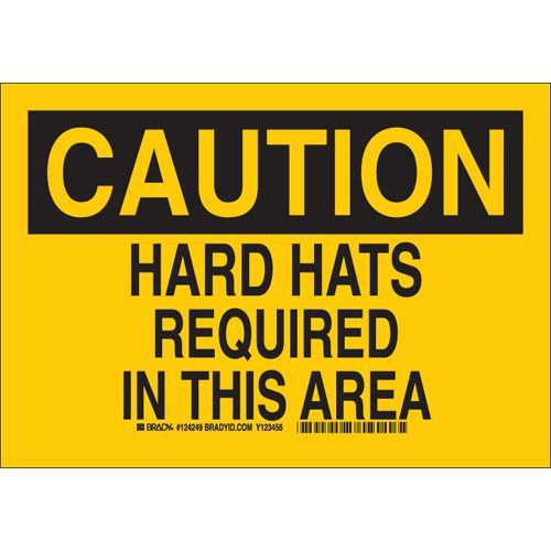 Brady 124252 CAUTION Hard Hats Required In This Area Sign - Self-sticking Polyester - Black on Yellow - 10 x 14
