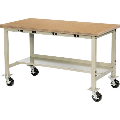 Global Industrial™ 72 x 36 Mobile Production Workbench - Power Apron, Shop Top Square Edge Tan