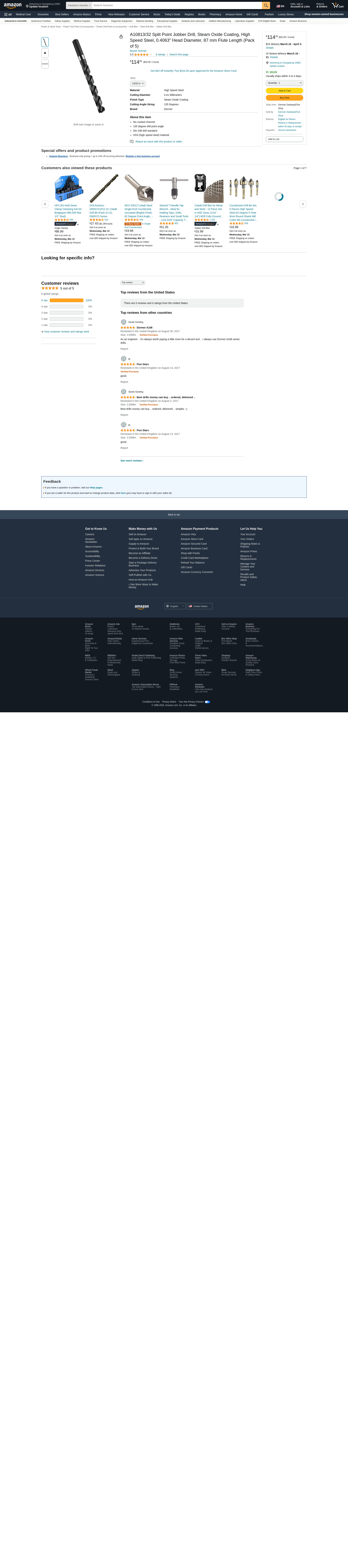 Dormer A10813/32 Split Point Jobber Drill, Steam Oxide Coating, High Speed Steel, 0.4063" Head Diameter, 87 mm Flute Length (Pack of 5)