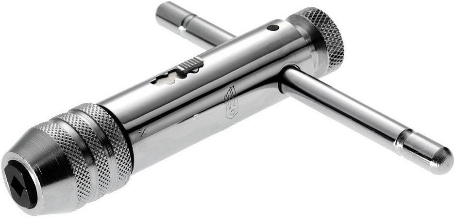 Porte outils ? cliquet court (Tourne ? gauche) pour tarauds M6Description: Cliquet ? droite et ? gauche. Position blocage. Pr?sentation : chrom?e polie.Informations:d (mm) : 20,5L (mm) : 85Ouverture maxi (mm) : 5Ouverture mini (mm) : 5Pour tarauds : M6Taraud? : M6Poids en grammes (g) : 165