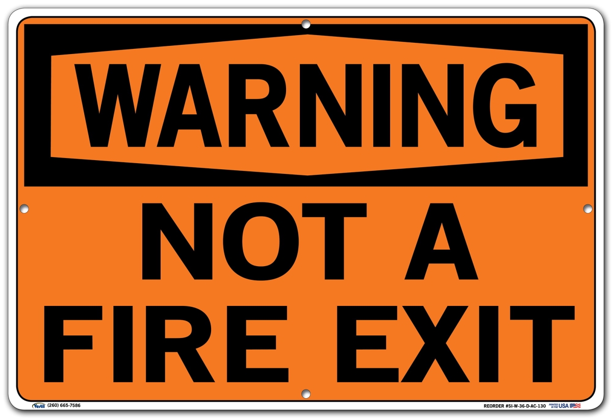 Vestil SI-W-36-D-AC-130 NOT A FIRE EXIT Warning Sign, Aluminum Composite, 0.130" Overall Size, 18.5" W x 12.5" H