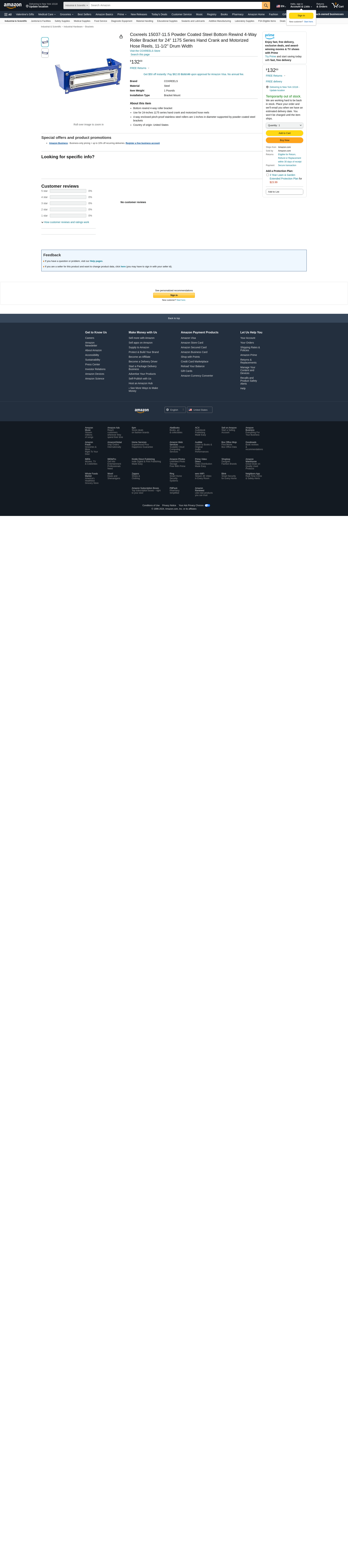 Coxreels 15037-11.5 Powder Coated Steel Bottom Rewind 4-Way Roller Bracket for 24" 1175 Series Hand Crank and Motorized Hose Reels, 11-1/2" Drum Width