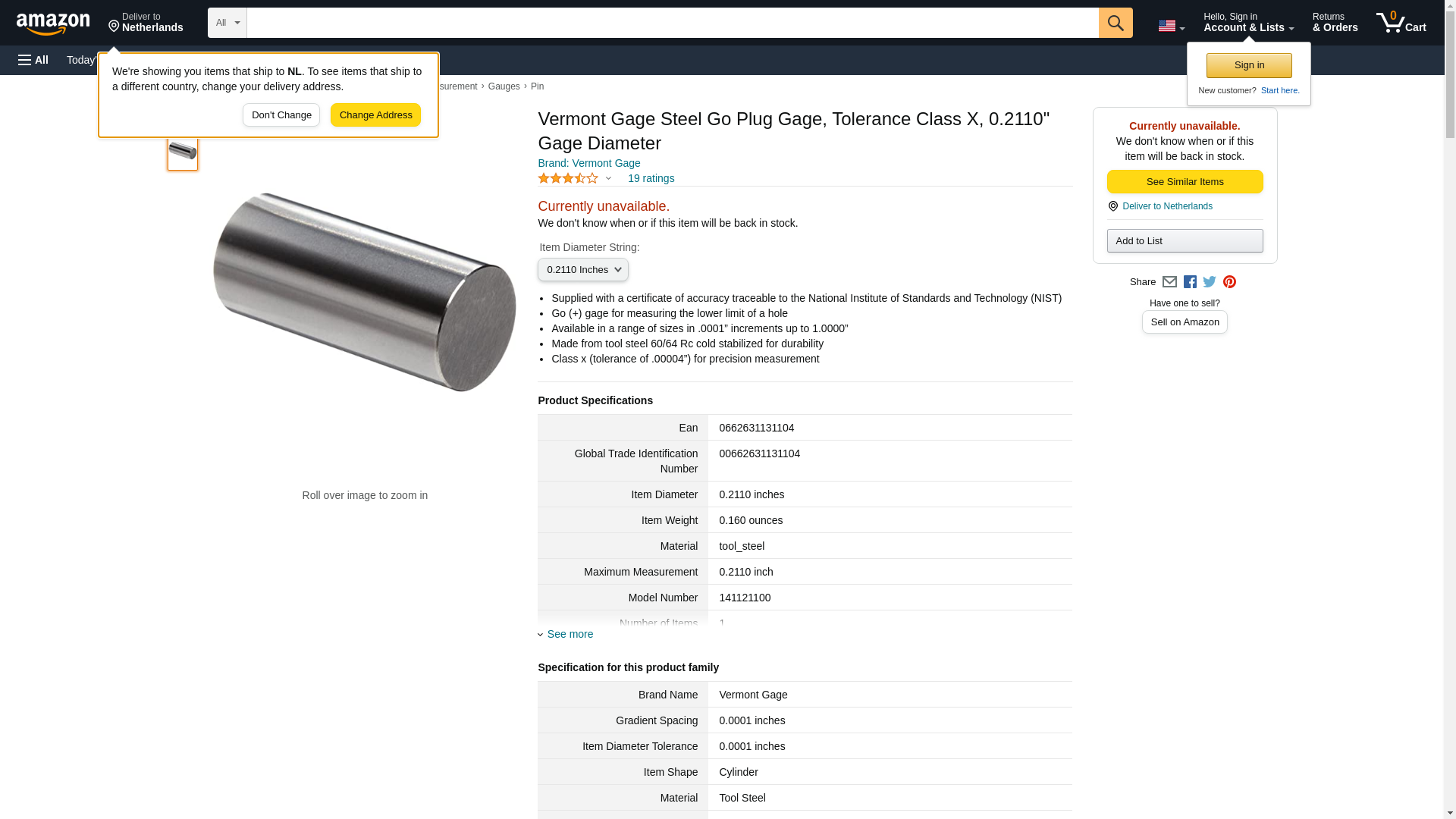 Vermont Gage 141121100, 0.2110" Class X Go Plug Gage (Pack of 11 pcs)