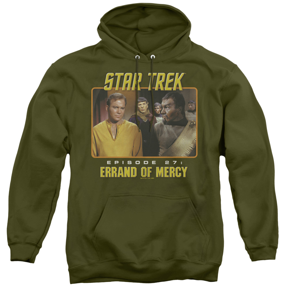 Trevco CBS504-AFTH-4 Star Trek Original & Episode 27 Adult Pull-Over Hoodie, Military Green - Extra Large