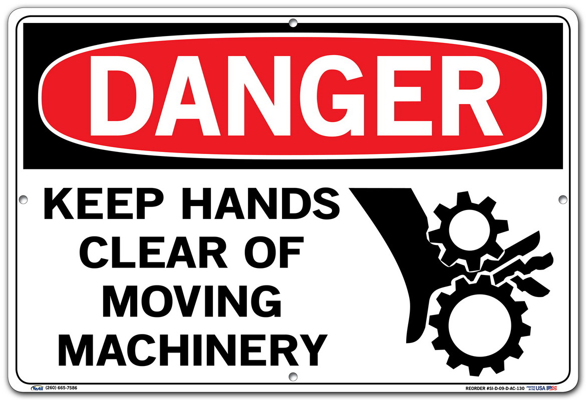 Vestil SI-D-09-D-AC-130 KEEP HANDS CLEAR OF MOVING MACHINERY Danger Sign, Aluminum Composite, 0.130" Overall Size, 18.5" W x 12.5" H