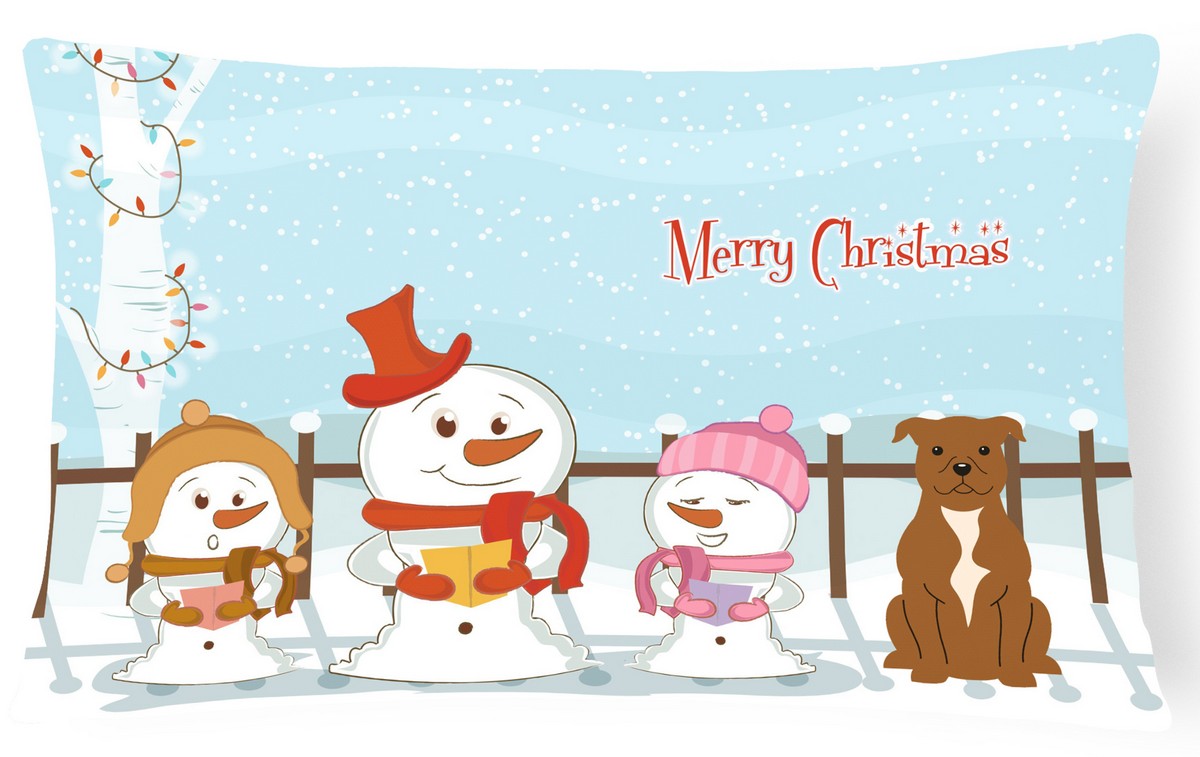 Carolines Treasures BB2378PW1216 Merry Christmas Carolers Staffordshire Bull Terrier Brown Canvas Fabric Decorative Pill