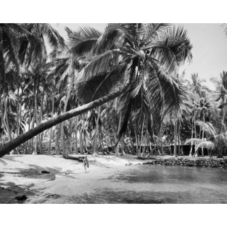 Stretched Canvas Art - Palm tree leaning over the beach, Hawaii, USA - Large 24 x 36 inch Wall Art Decor Size.