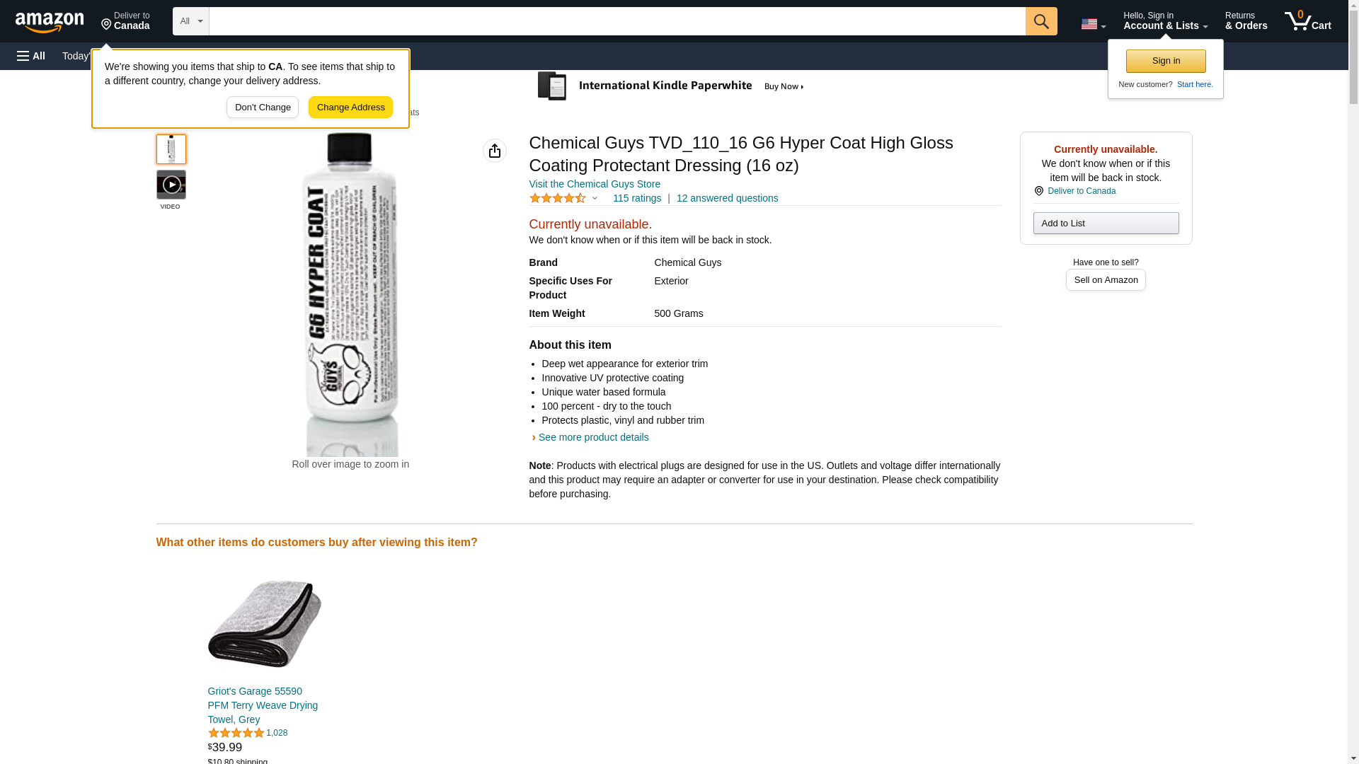 Chemical Guys TVD_110_16 G6 Hyper Coat High Gloss Coating Protectant Dressing (16 oz)