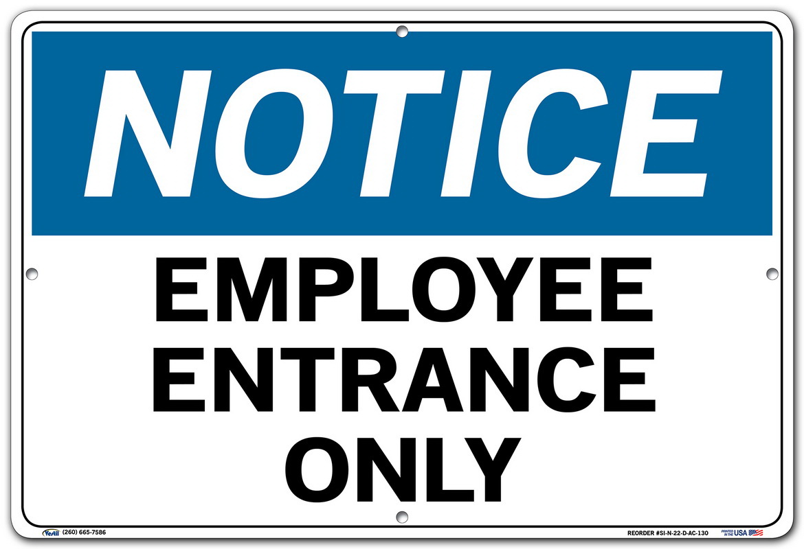 Vestil SI-N-22-D-AC-130 Notice Sign Aluminum Composite .130" Overall Size 18.5"W x 12.5"H Employee Entrance Only , 12.5" Height, 18.5" Wide, 0.13" Length