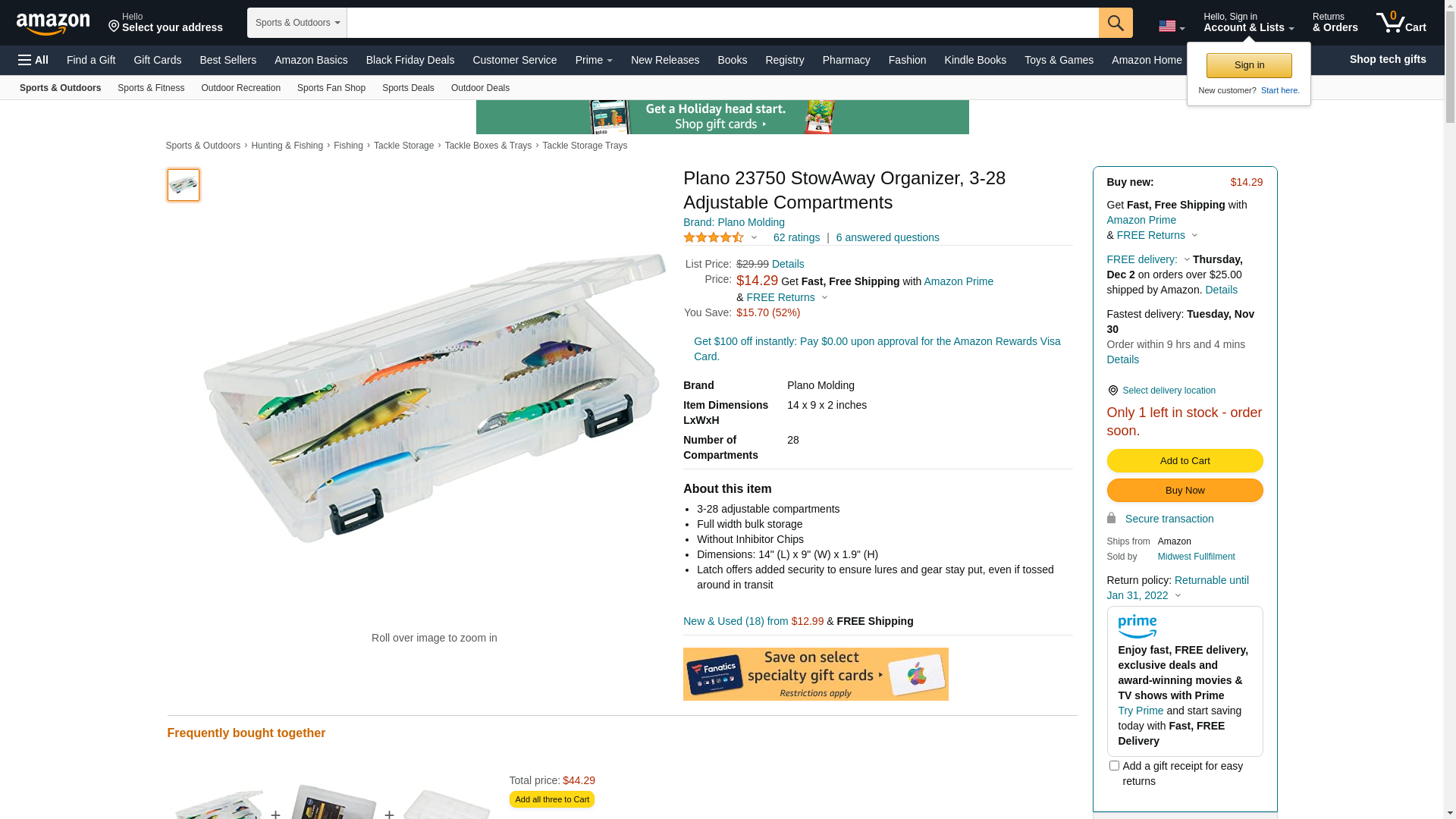 Plano 23750 StowAway Organizer, 3-28 Adjustable Compartments