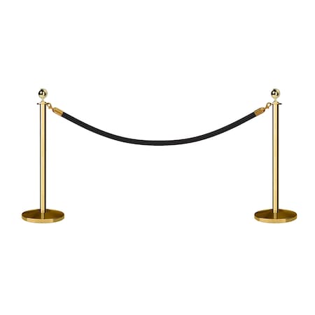 Stanchion Post and Rope Kit Pol.Brass, 2 Ball Top1 Black Rope