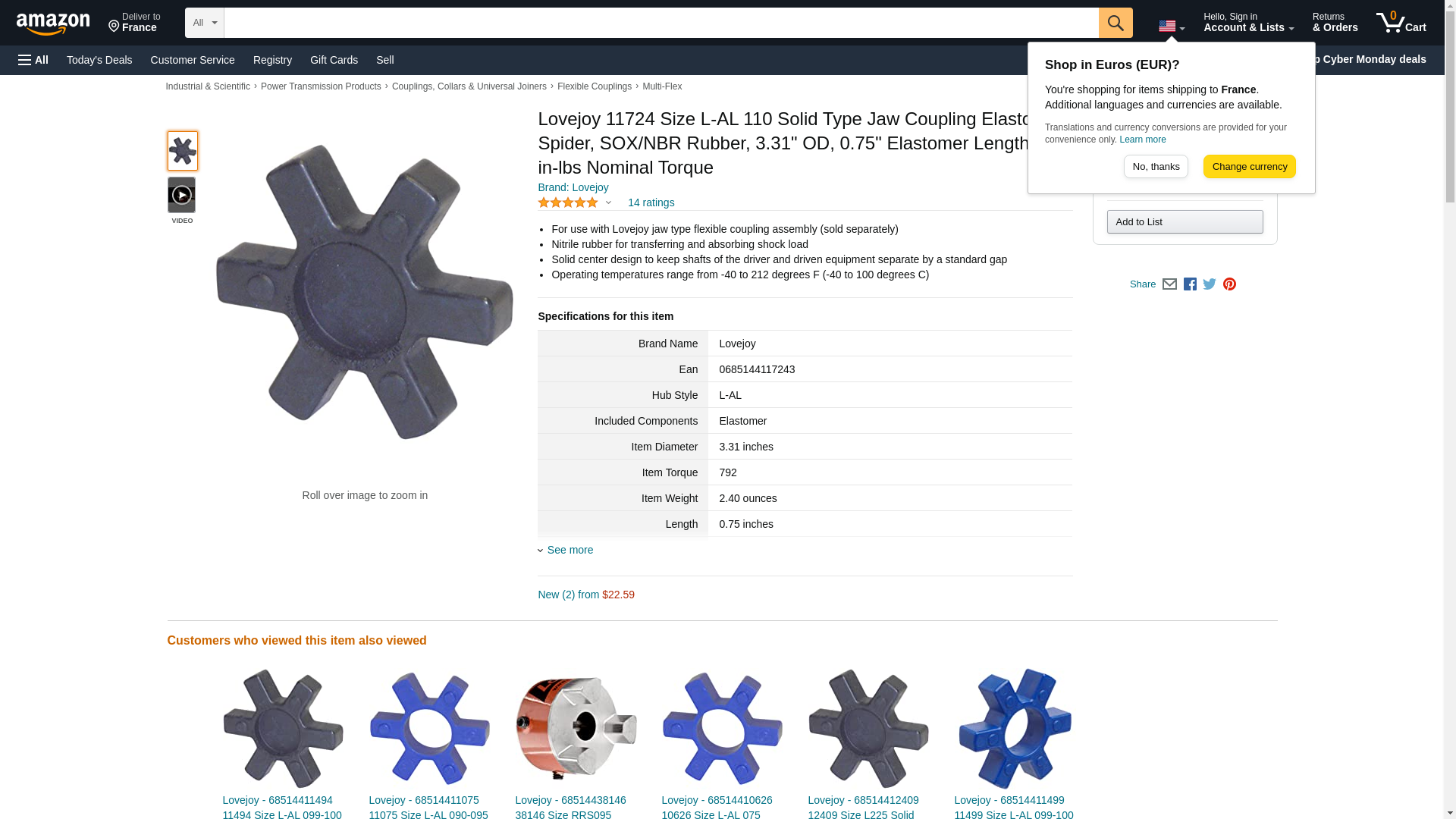 - For use with Lovejoy jaw type flexible coupling assembly (sold separately)