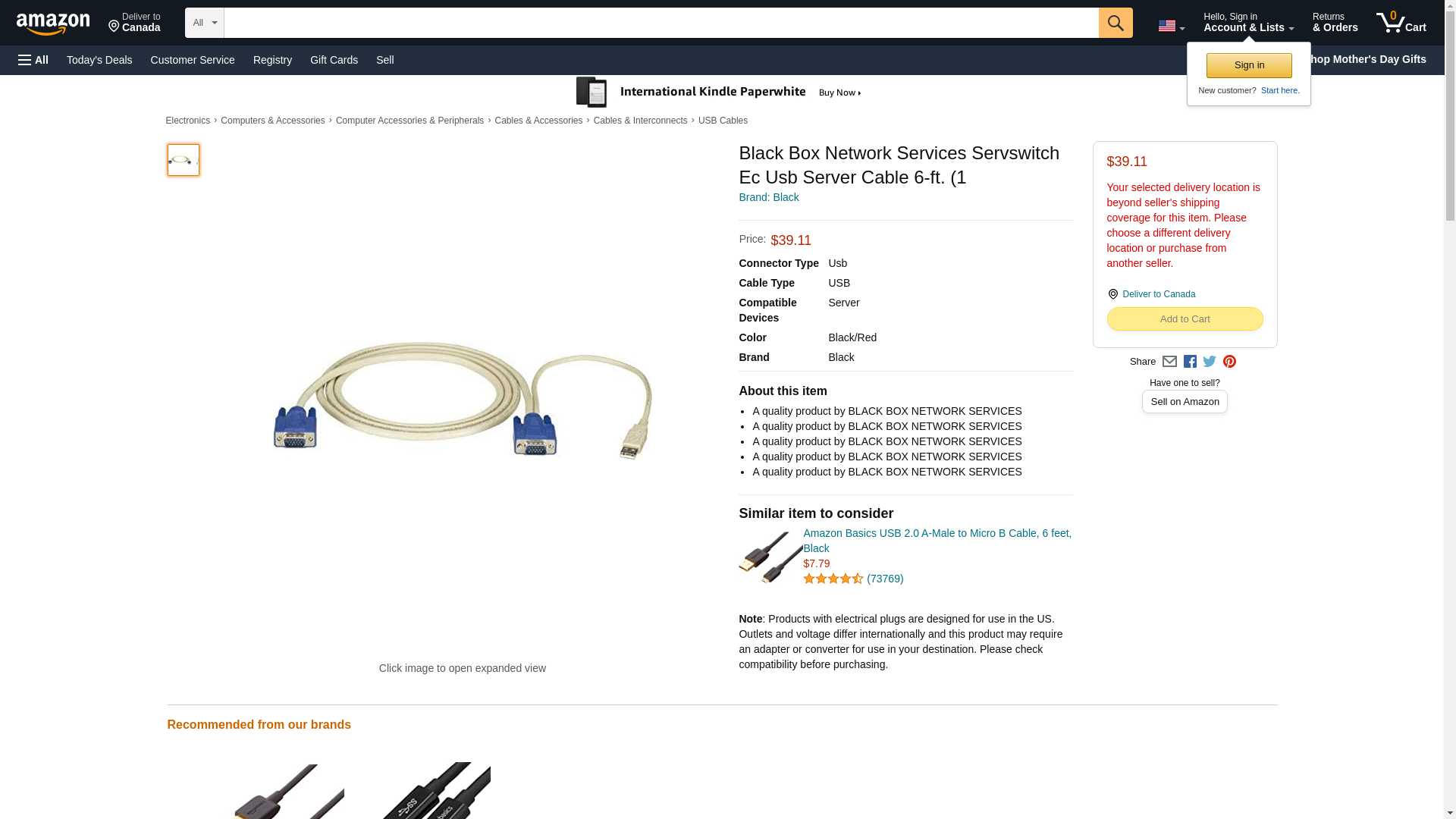 Black Box Network Services Servswitch Ec Usb Server Cable 6-ft. (1