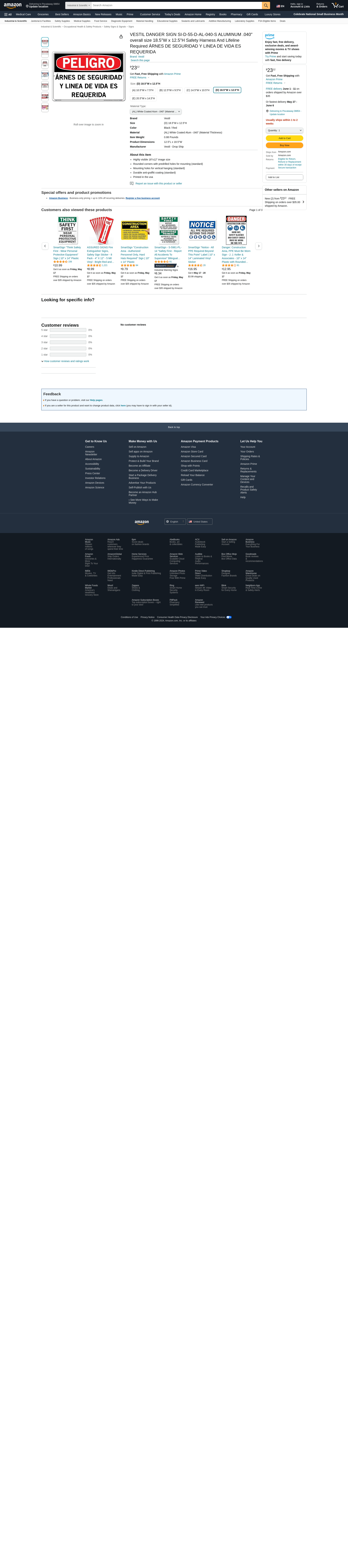 VESTIL DANGER SIGN SI-D-55-D-AL-040-S ALUMINUM .040" overall size 18.5"W x 12.5"H Safety Harness And Lifeline Required ÁRNES DE SEGURIDAD Y LINEA DE VIDA ES REQUERIDA