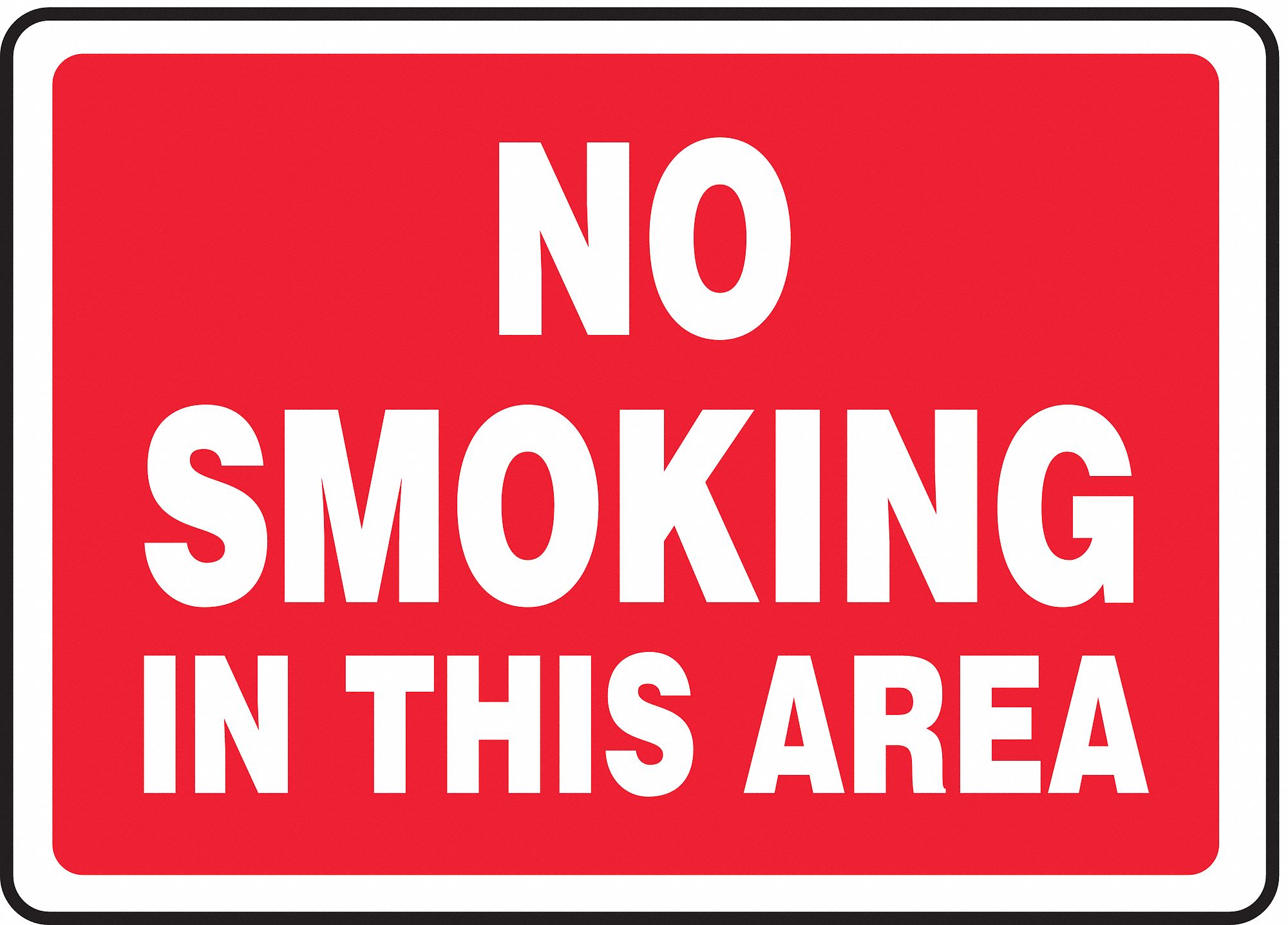 Accuform, MSMG501VS, 7" x 10" Smoking Control Sign "No Smoking In This Area" Adhesive Vinyl Features: Flexible 4-mil thick vinyl with acrylic adhesive Non-glare surface printed Moisture resistant Service temperature range: -40 to 176 F