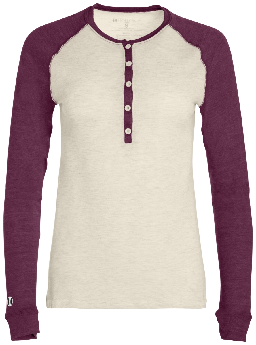 Holloway Sportswear Ladies Alum Henley T-Shirt. 229393 Vintage Birch / Vintage Maroon XS