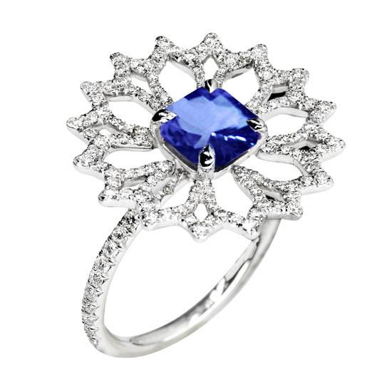 Harry Chad HC11855-6 2.51 CT Flower Style Engagement Ring Cushion AAA Tanzanite Diamonds, Blue & F - VS1 Clarity
