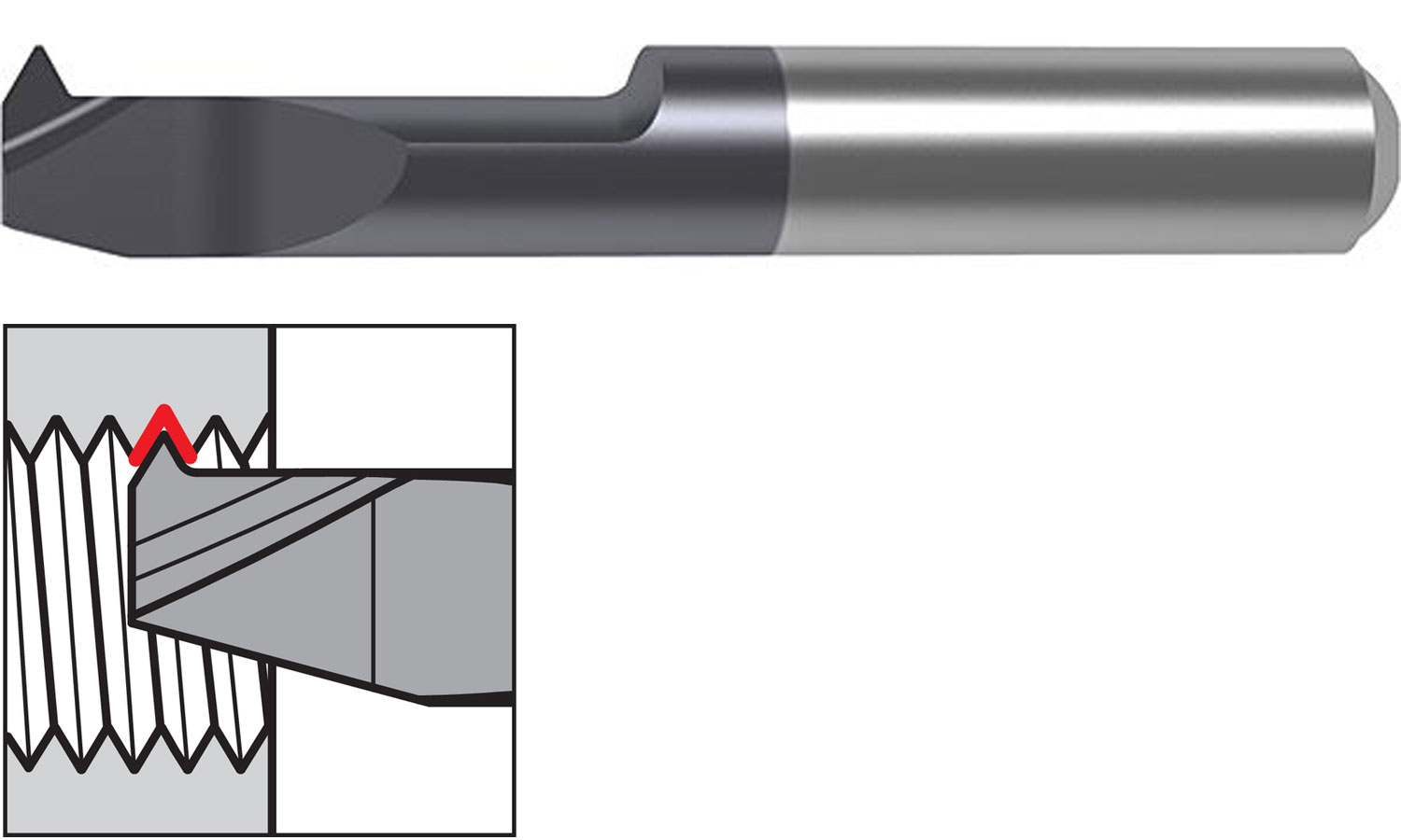 M10x 1.5mm Pitch Partial Profile GUHRING I.D. Thread LH System 106 Insert, 8.5mm Min Bore, 12mm Reach, Nano-A Coated M10.0,1.50mm Pitch,12mm Reach GG106.TM10.150.12.85.L, Nano-A Coated Type GG106 Guhring Micro-Precision System 106 Carbide Stick Insert with 6mm Quick Change Shank For Partial Profile Metric Threads. Guhring Series No. 25767 Order Code 6.014 Made in Germany, Guhring Part #9257670060140