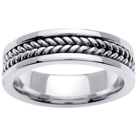 "18K White Gold Braided Coil Twist Men's Comfort Fit Wedding Band (6mm) Size-11"
