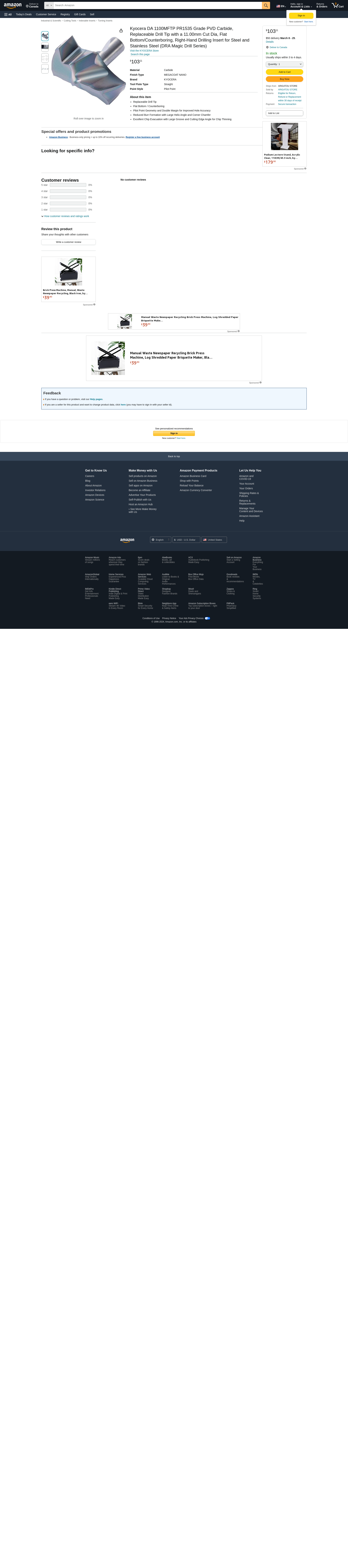 <ul><li>Replaceable Drill Tip</li><li>Flat Bottom / Counterboring</li><li>Pilot Point Geometry and Double Margin for Improved Hole Accuracy</li><li>Reduced Burr Formation with Large Helix Angle and Corner Chamfer</li><li>Excellent Chip Evacuation with Large Groove and Cutting Edge Angle for Chip Thinning</li></ul><p>Product Details:</p><ul><li>Insert Style: DA</li><li>Insert Size: 1100</li><li>Chipbreaker: M-FTP</li><li>Insert Grade: PR1535</li><li>Material: Carbide</li><li>Coating Process: PVD</li><li>Coating / Composition: MEGACOAT NANO</li><li>[DC] Tip Cutting Diameter (Decimal Inch): 0.4331</li><li>[DC] Tip Cutting Diameter (mm): 11.00</li><li>[DC2] Cutting Diameter Secondary (Decimal Inch): 0.1339</li><li>[DC2] Cutting Diameter Secondary (mm): 3.40</li><li>[k8] Dimension Tolerance (Decimal Inch): +0.0011, 0</li><li>[k8] Dimension Tolerance (mm): +0.027, 0</li><li>[PL] Point Length (Decimal Inch): 0.0197</li><li>[PL] Point Length (mm): 0.50</li><li>Insert Seat Size: 110</li><li>Primary Workpiece Material: (P) Steel, (M) Stainless Steel</li><li>Insert Hand: Right-Hand</li><li>Insert Holding Method: Screw</li><li>Number of Cutting Edges: 2</li><li>Series: DRA Magic Drill</li><li>Application: Drilling</li><li>Compatible Holders (Partial): SS0500-DRA110M..., SF0625-DRA110M..., SS12-DRA110M..., SF16-DRA110M...</li></ul>DRA Magic Drill BrochureAutomotive Tooling Solutions Brochure