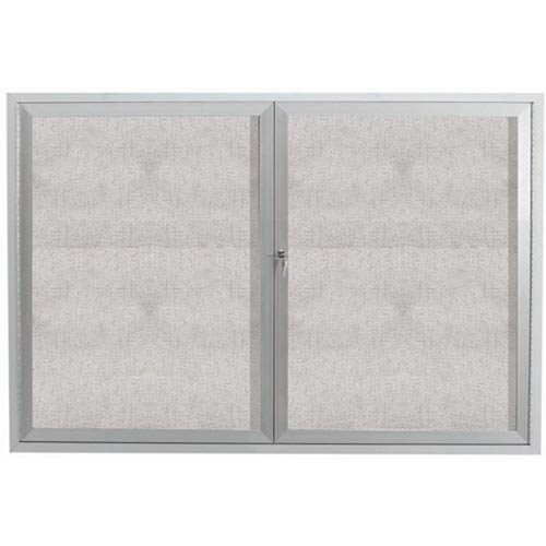 Aarco ODCC4872RI 48" x 72" Enclosed Hinged Locking 2 Door Satin Anodized Aluminum Finish Outdoor Lighted Bulletin Board Cabinet