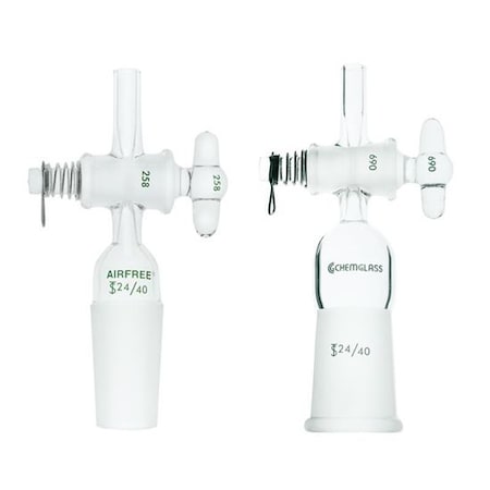 Chemglass AF-0505-10 Series AF-0505 Adapter, Airfree, Schlenk, Inlet, 2 mm Glass Stopcock, 14/20 Inner Joint