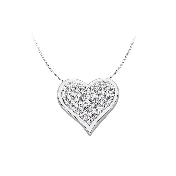 Fine Jewelry Vault UBPDH121W14CZ 1.5 CT CZ Heart Pendant in 14K White Gold, 64 Stones
