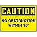 Accuform, MVHR673VS, 7" x 10" OSHA Caution Safety Sign "No Obstruction Within 36"" Adhesive Vinyl Features: Flexible 4-mil thick vinyl with acrylic adhesive Non-glare surface printed Moisture resistant Service temperature range: -40 to 176 F