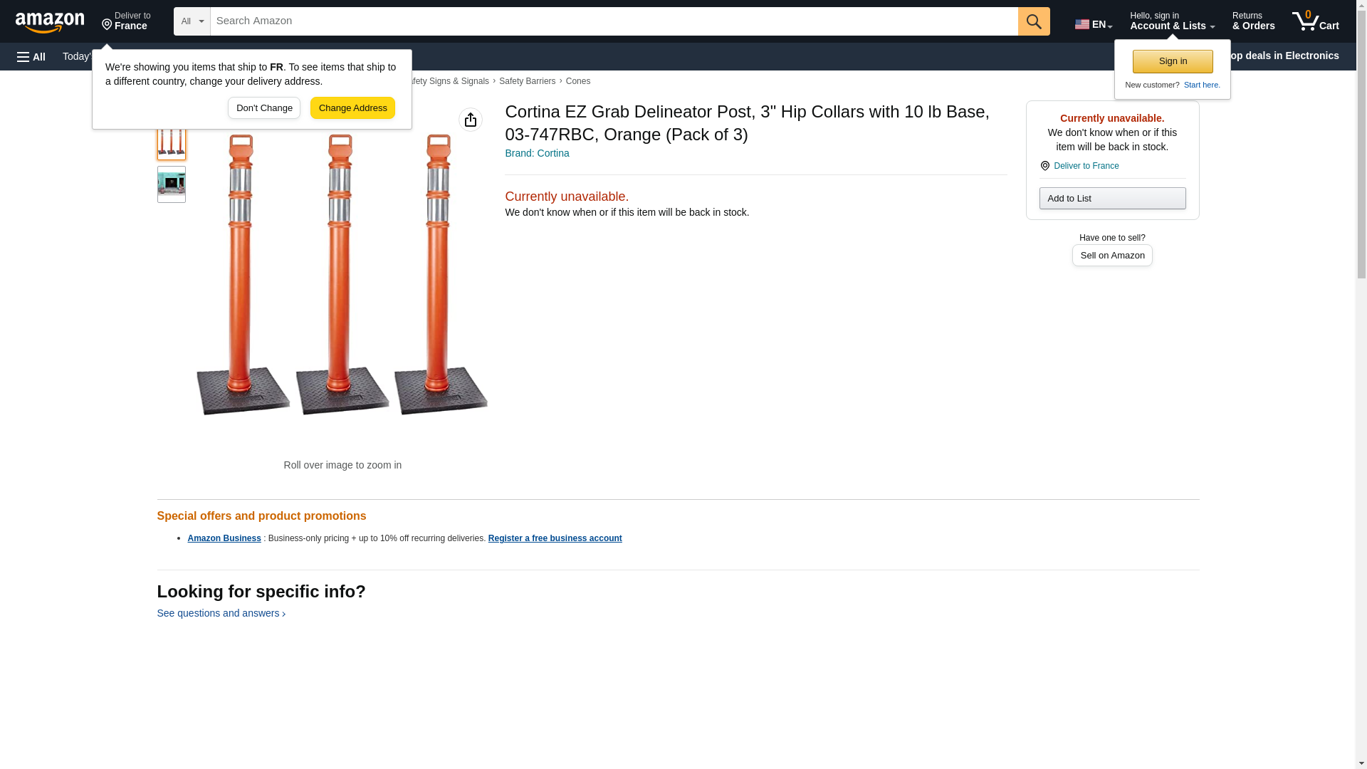Cortina LF45747RBC Delineator Orange with 10 lbs Base