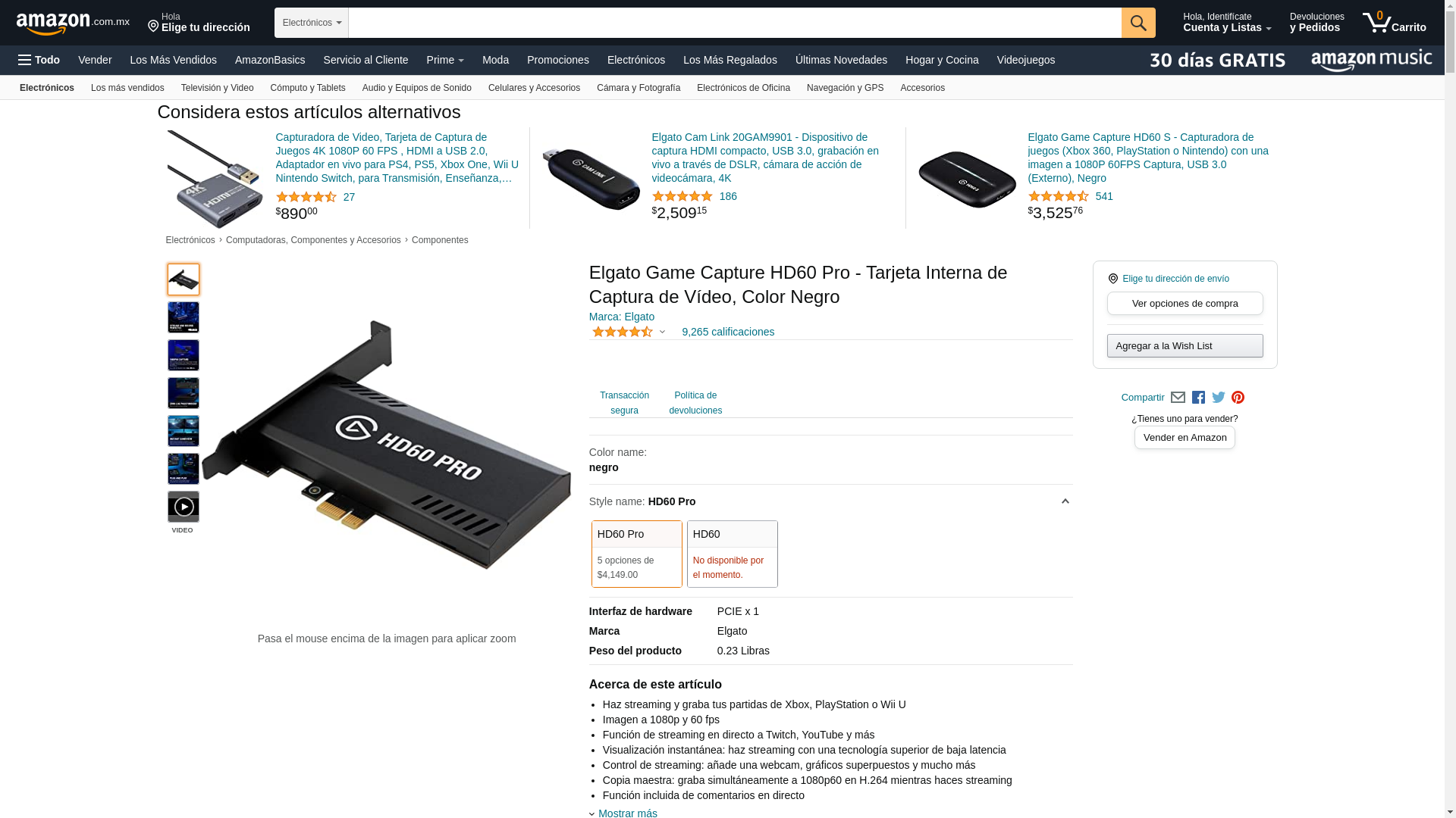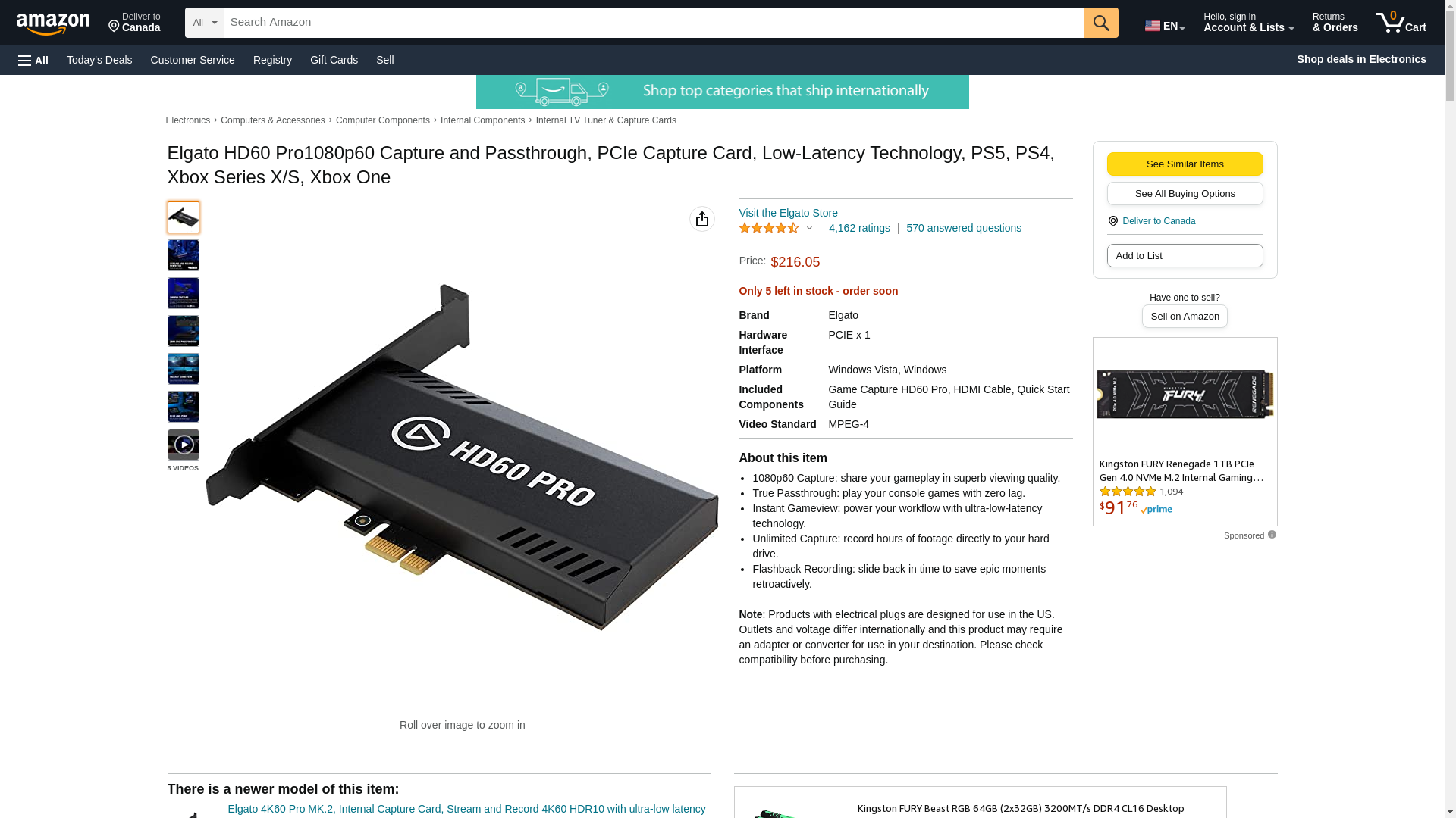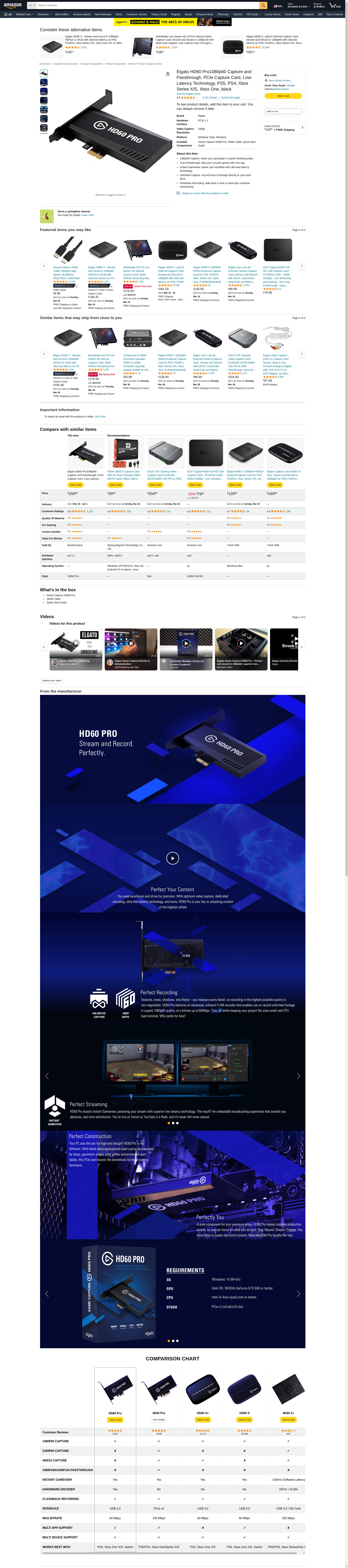 Elgato HD60 Pro1080p60 Capture and Passthrough, PCIe Capture Card, Low-Latency Technology, PS5, PS4, Xbox Series X/S, Xbox One, black