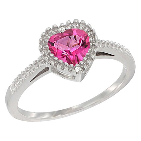 10K White Gold Natural Pink Topaz Ring Heart 6x6 mm, sizes 5 - 10