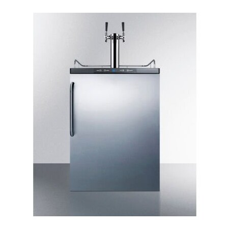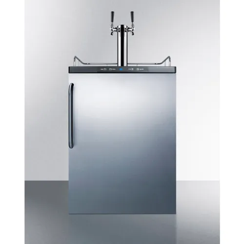 SBC635MBISSTBTWIN 24" Built In Beer Dispenser with 5.6 cu. ft. Capacity, Deep Chill Function, Digital Thermostat, Automatic Defrost, Top Rail Guard and Pro Towel Bar Handle: Stainless Steel with Twin Tap
