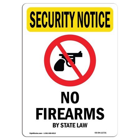 OSHA SECURITY NOTICE Sign - No Firearms By State Law With Symbol | Choose from: Aluminum, Rigid Plastic or Vinyl Label Decal | Protect Your Business, Work Site, Warehouse & Shop Area | Made in the USA