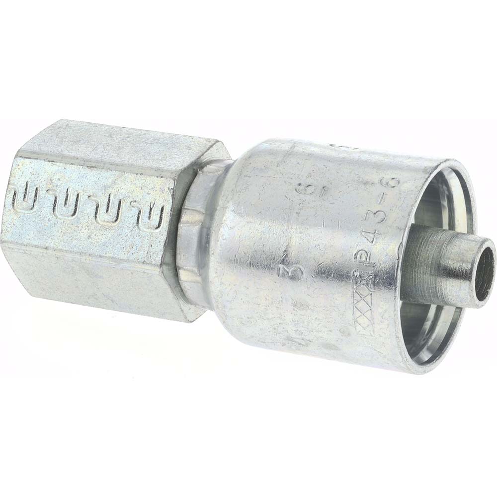 'Hydraulic Hose Fitting, Crimp, Female NPT, Fitting Type Straight, Hose (In.) 3/8, Thread NPT 3/8-18, Length (In.) 2.32, Dash Size 6, Fitting Material Steel, Finish Zinc'